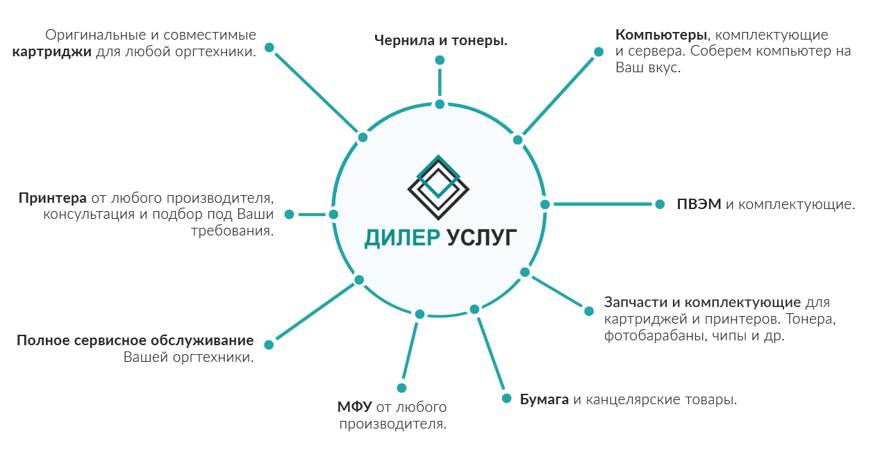 Сегодня Дилер Услуг - это магазин, осуществляющий розничную и оптовую торговлю, на котором собраны качественные и бюджетные бренды расходных материалов и не только. Наши ключевые направления: картриджи, запчасти, принтера, компьютеры и тд.
