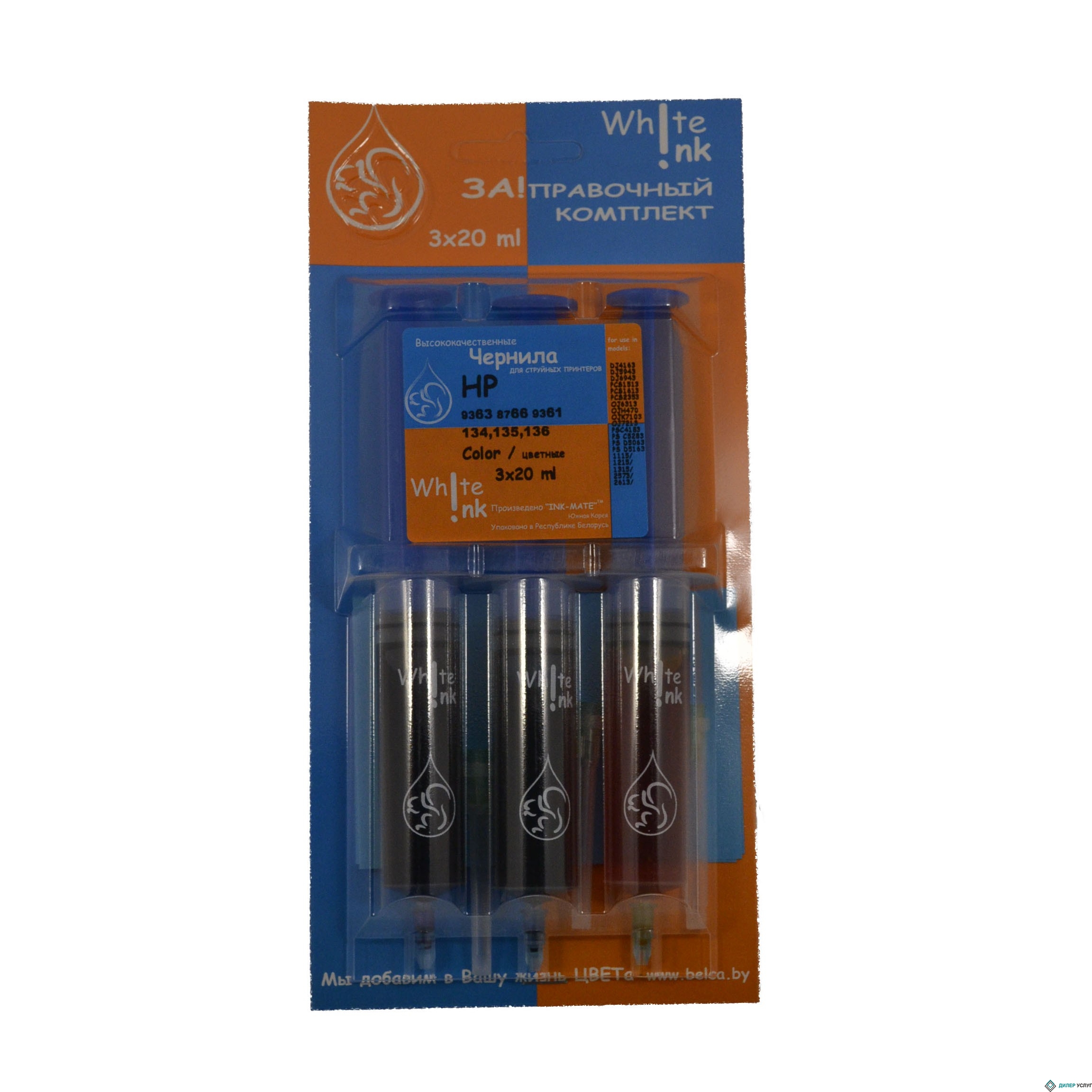 заправочный комплект HP 4907/4908/4909 (№ 940), 3*20 мл, Color Pigment, White Ink (Ink-mate)
